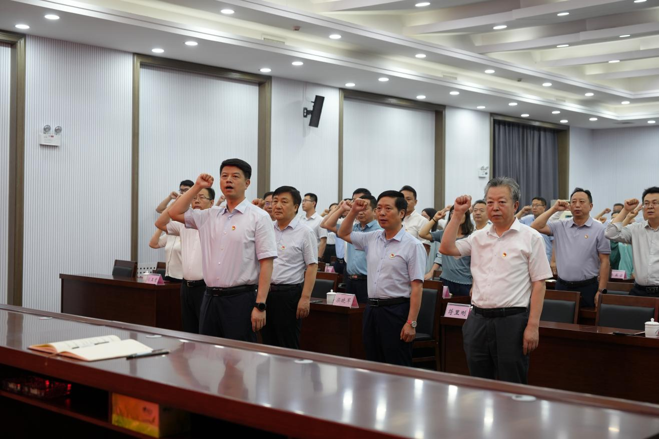 國歌嘹亮,誓言鏗鏘。大會在雄壯的國歌聲中拉開帷幕,全體參會人員莊嚴(yán)肅立,齊唱國歌。隨后在黃巍同志的領(lǐng)誓下,全體黨員面向黨旗,高舉右拳,莊嚴(yán)宣誓。現(xiàn)場鏗鏘有力的宣誓聲,既傳達(dá)出身為共產(chǎn)黨員的自豪感和使命感,也表明了大家堅定不移聽黨話、跟黨走的決心和信念。