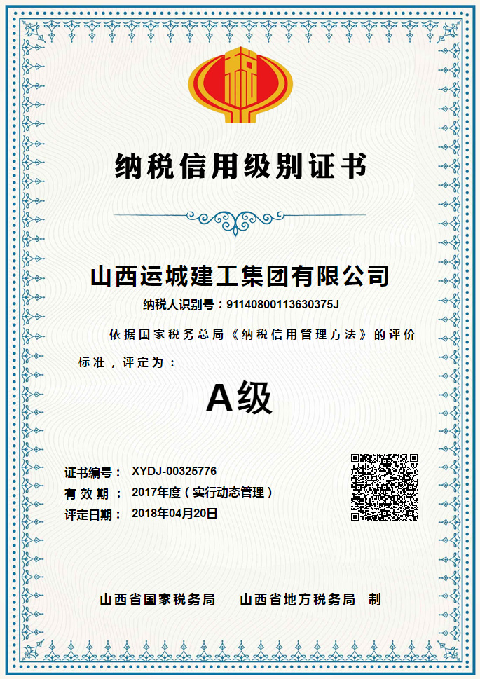 近日,山西省國家稅務局和山西省地方稅務局聯(lián)合發(fā)布《2017年度納稅信用評價A級納稅人名單》,我公司獲評納稅信用等級A級。自建筑施工企業(yè)2016年開始參加年度納稅信用等級評定以來,我公司首次獲得A級納稅人信用評定,這是稅務機關對公司依法納稅、誠信納稅工作的高度肯定及認可。