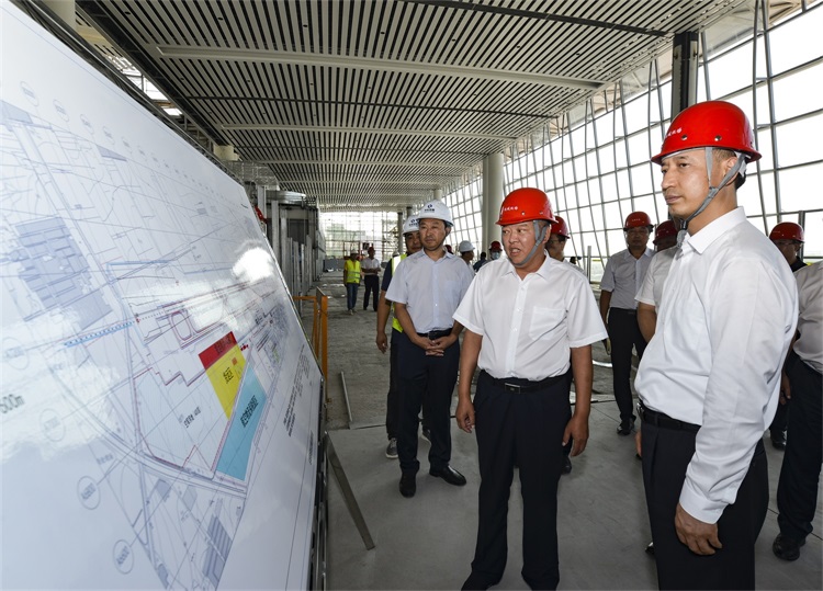 盧東亮深入工地現(xiàn)場(chǎng),認(rèn)真聽(tīng)取運(yùn)城民航機(jī)場(chǎng)有限公司董事長(zhǎng)郝榮生的匯報(bào),詳細(xì)了解項(xiàng)目進(jìn)展及站前立體交通樞紐、邊防檢查站執(zhí)勤業(yè)務(wù)用房、航食廠區(qū)、航空加油站、航空油庫(kù)等配套設(shè)施建設(shè)情況,并對(duì)項(xiàng)目到位的安全文明施工措施、熱火朝天的建設(shè)景象給予了高度肯定。目前,項(xiàng)目正在進(jìn)行航站樓裝飾裝修及玻璃幕墻、空調(diào)強(qiáng)弱電的安裝工作。在保障安全和質(zhì)量的前提下,近400名工人正全力以赴趕進(jìn)度,確保如期完成建設(shè)任務(wù)。